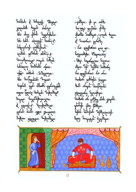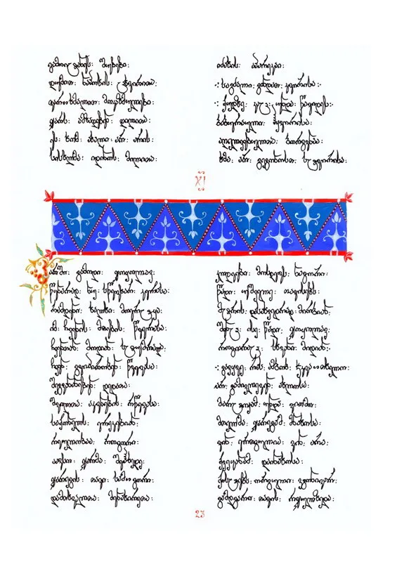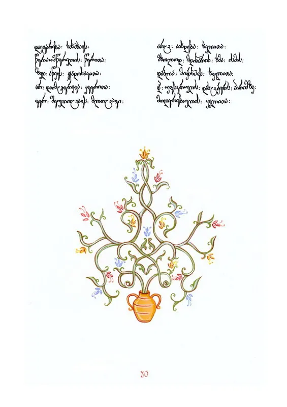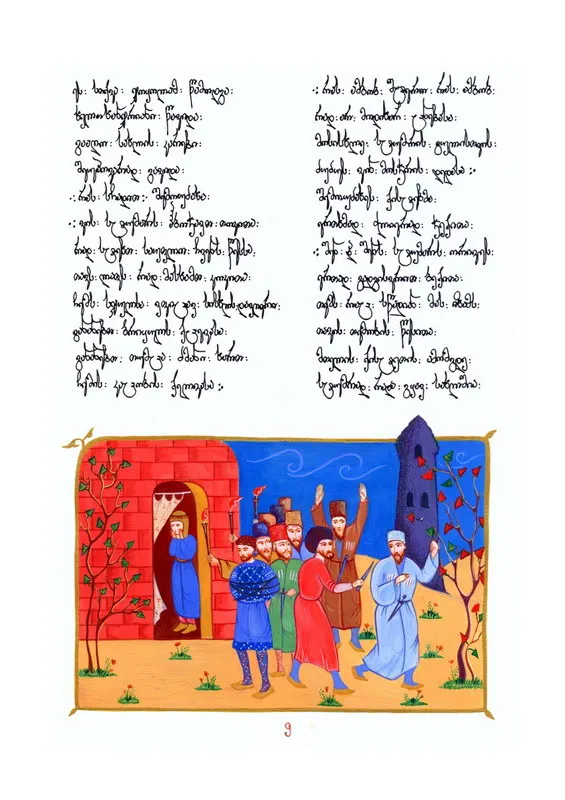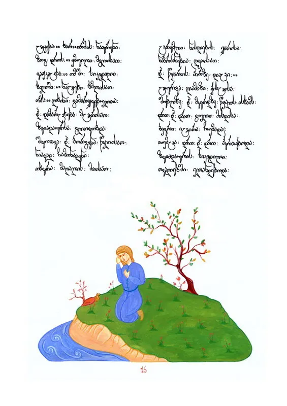 Icon painting was already popular in Georgia. But manuscript illumination was completely unknown. Ketavan quickly mastered the style I prepared. Miniature art is close to the icon painting technique. Again, after many sketches, she completed the book’s remaining miniatures and chapter ornamental decorations.