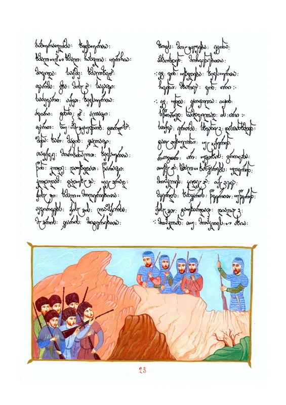 One year later, in response to these events, I collaborated with my friend in early August 2009 to create a manuscript of Vazha-Pshavela’s poem “Host and Guest”. This was our echo to the previous year’s war — to show the strength and immortality of the Georgian spirit. We also aimed to highlight the depth and importance of Georgian literature, poetry, and culture in general.